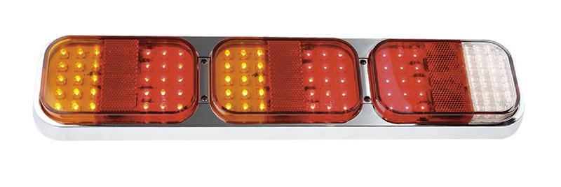 A unique design offering multiple rear combination options. Features multi volt circuitry, polycarbonate lens construction with in-built reflector, housed in an attractive chrome bracket. The perfect lamp for those who require something a little different to enhance the appearance of their vehicle.