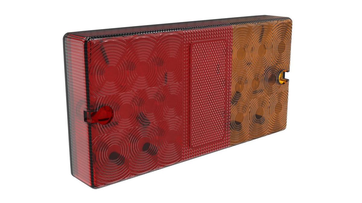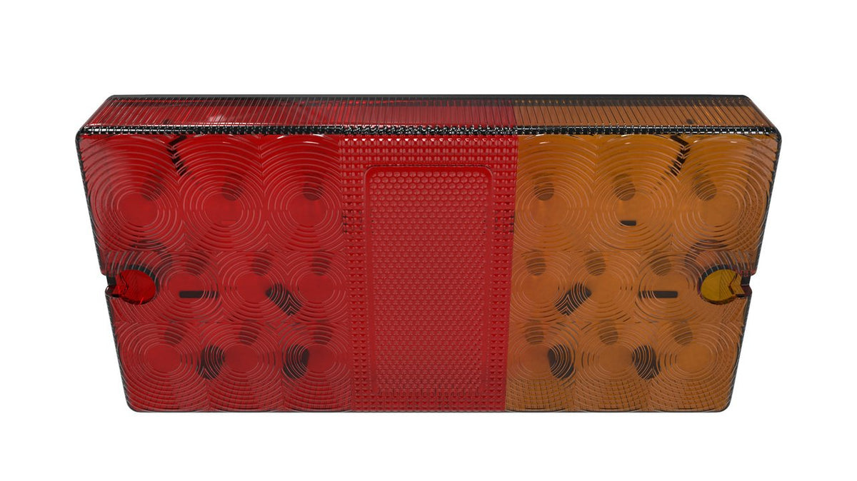AP10033. Rectangular, slimline Amber/Red and Reflectors with number plate light. Easy to mount, high quality optic LEDs deliver superior performance. Polycarbonate lens construction and great weather resistance provide exceptional durability.